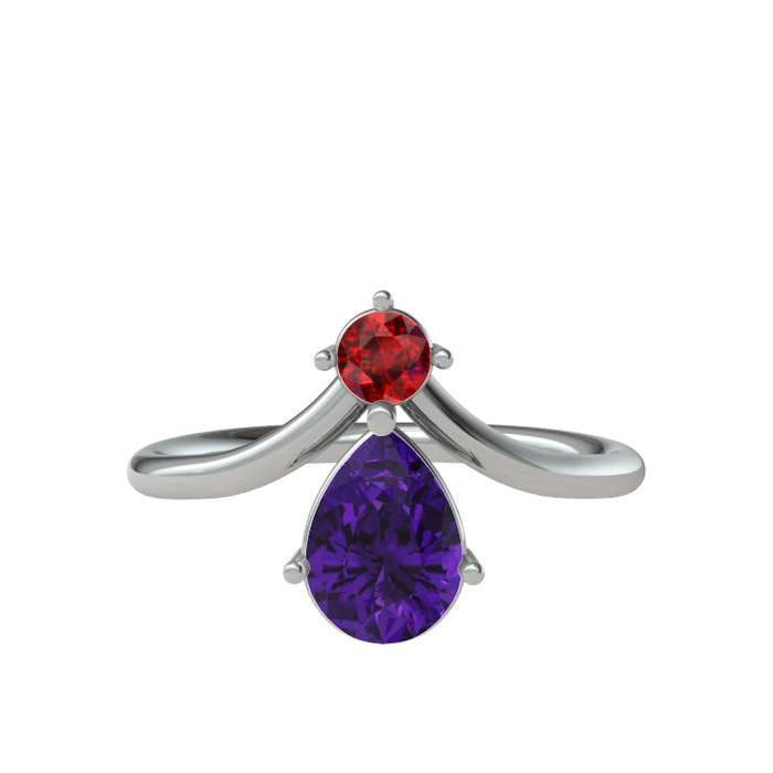 Garnet ve ametist 14 ayar beyaz altın yüzük