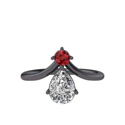 Garnet ve beyaz zirkon 925 ayar siyah rodyum kaplama gümüş yüzük