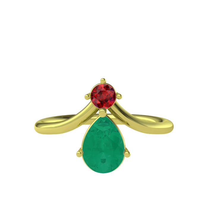 Garnet ve kök zümrüt 14 ayar altın yüzük