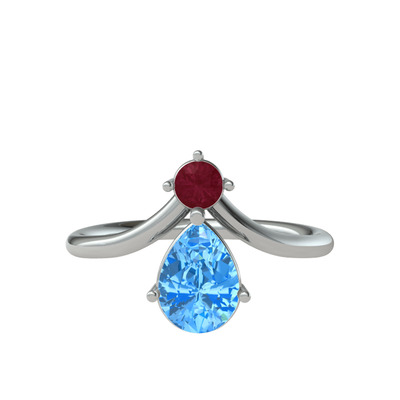 Kök yakut ve akuamarin 925 ayar gümüş yüzük