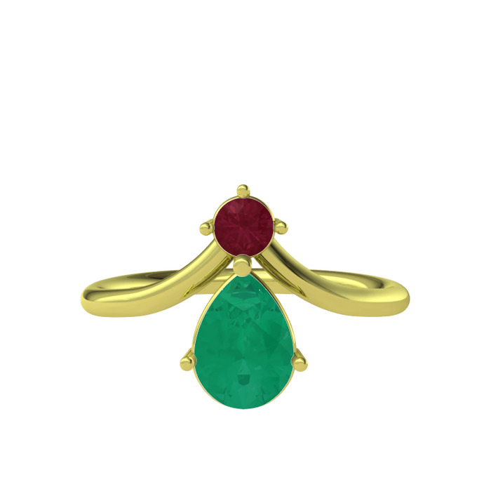 Kök yakut ve kök zümrüt 925 ayar altın kaplama gümüş yüzük