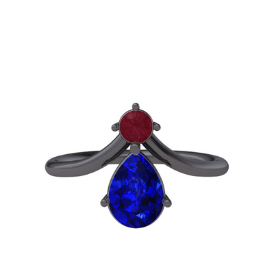 Kök yakut ve lab safir 925 ayar siyah rodyum kaplama gümüş yüzük