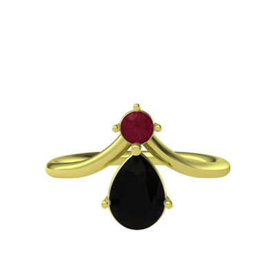 Kök yakut ve siyah zirkon 14 ayar altın yüzük