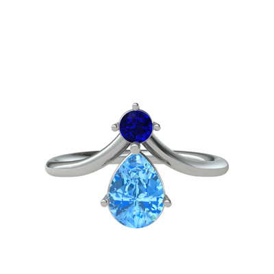 Lab safir ve akuamarin 14 ayar beyaz altın yüzük