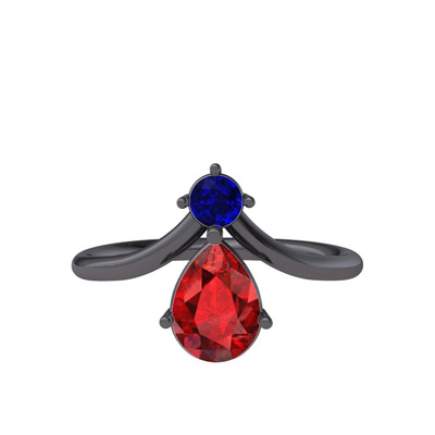 Lab safir ve garnet 925 ayar siyah rodyum kaplama gümüş yüzük