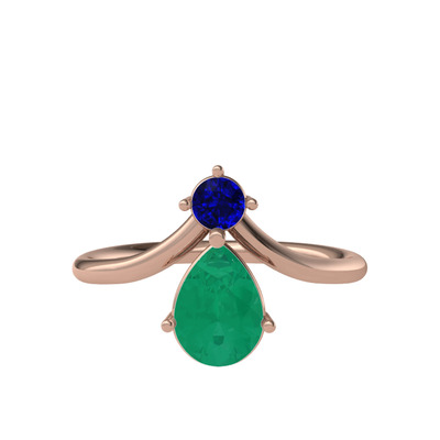 Lab safir ve kök zümrüt 14 ayar rose altın yüzük