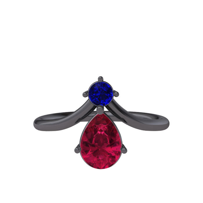 Lab safir ve rodolit garnet 925 ayar siyah rodyum kaplama gümüş yüzük