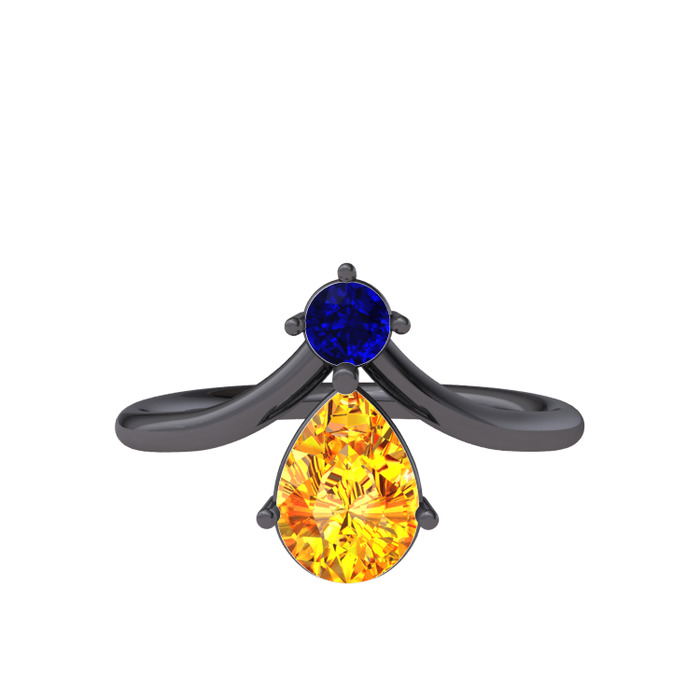 Lab safir ve sitrin 925 ayar siyah rodyum kaplama gümüş yüzük
