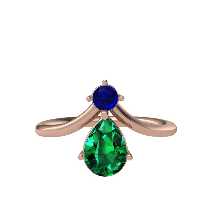 Lab safir ve yeşil kuvars 925 ayar rose altın kaplama gümüş yüzük