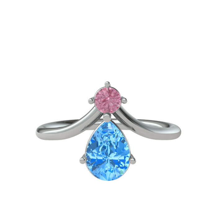 Pembe kuvars ve akuamarin 18 ayar beyaz altın yüzük