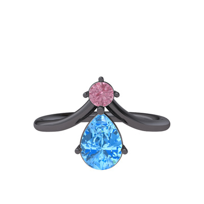Pembe kuvars ve akuamarin 925 ayar siyah rodyum kaplama gümüş yüzük