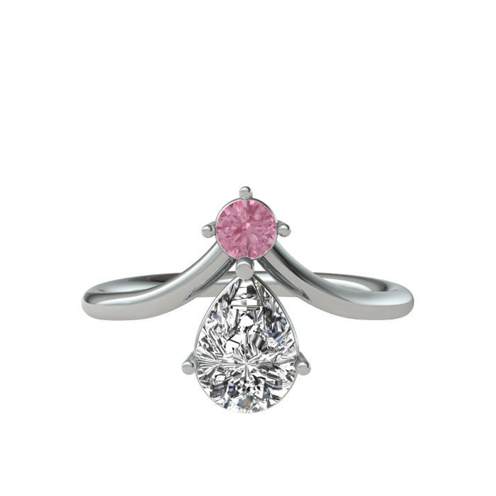 Pembe kuvars ve beyaz zirkon 925 ayar gümüş yüzük