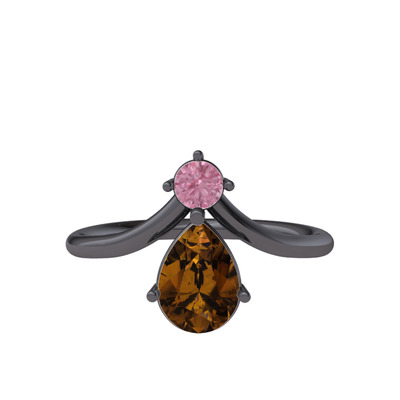 Pembe kuvars ve dumanlı kuvars 925 ayar siyah rodyum kaplama gümüş yüzük