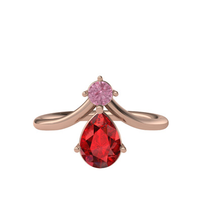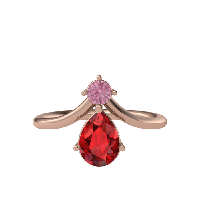 Pembe kuvars ve garnet 14 ayar rose altın yüzük
