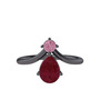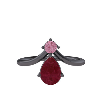 Pembe kuvars ve kök yakut 925 ayar siyah rodyum kaplama gümüş yüzük