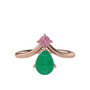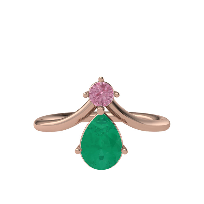 Pembe kuvars ve kök zümrüt 14 ayar rose altın yüzük