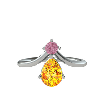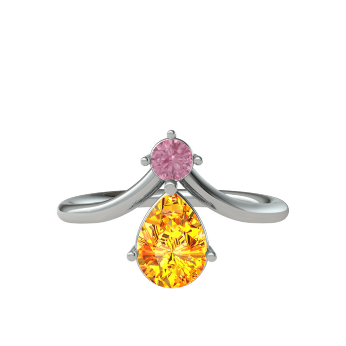 Pembe kuvars ve sitrin 18 ayar beyaz altın yüzük