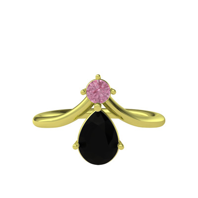 Pembe kuvars ve siyah zirkon 925 ayar altın kaplama gümüş yüzük