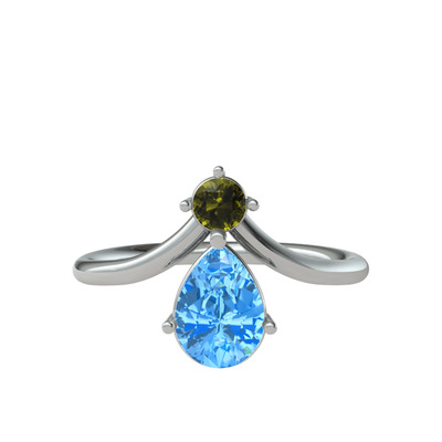 Peridot ve akuamarin 18 ayar beyaz altın yüzük