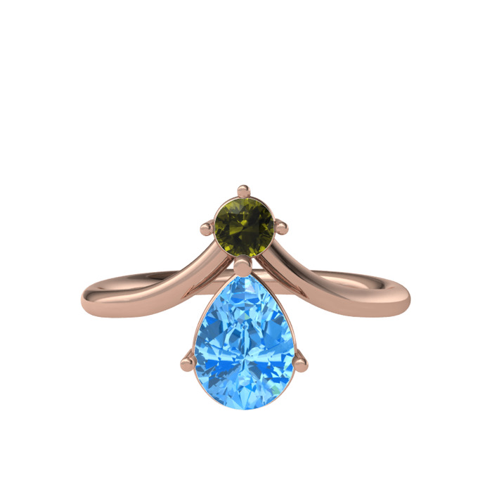 Peridot ve akuamarin 925 ayar rose altın kaplama gümüş yüzük