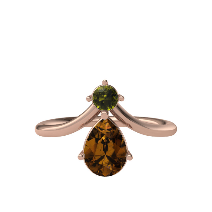 Peridot ve dumanlı kuvars 18 ayar rose altın yüzük