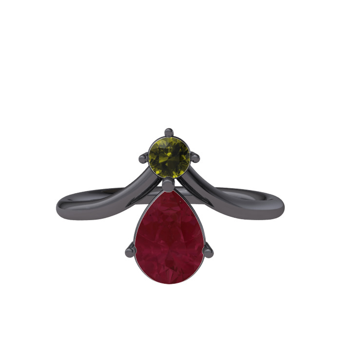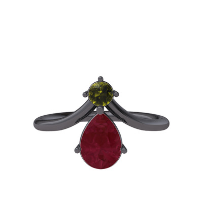 Peridot ve kök yakut 925 ayar siyah rodyum kaplama gümüş yüzük