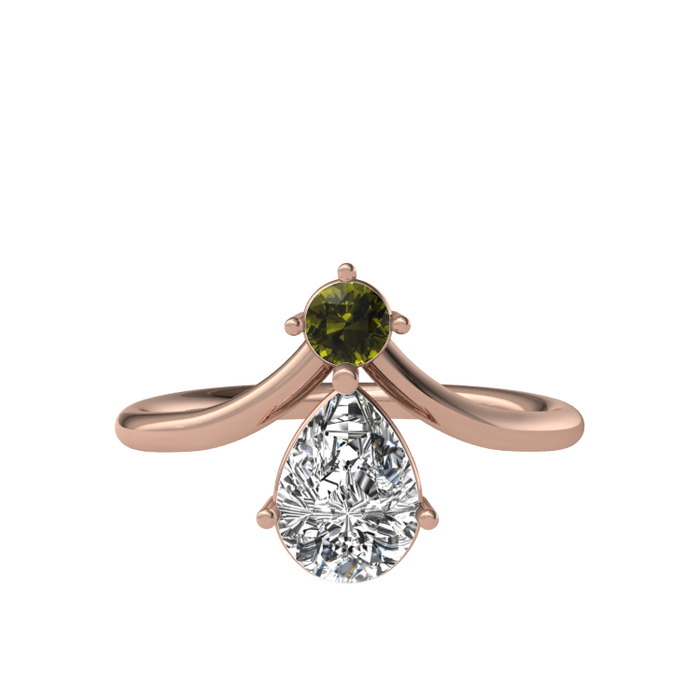 Peridot ve swarovski 14 ayar rose altın yüzük
