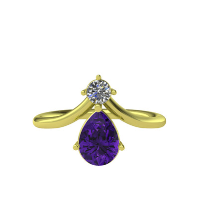 Pırlanta ve ametist 8 ayar altın yüzük (0.11 karat)