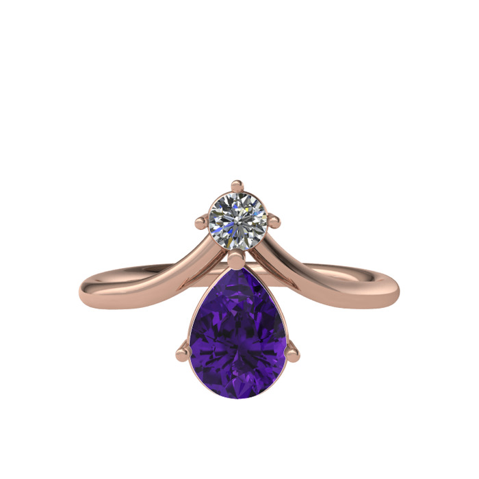 Pırlanta ve ametist 925 ayar rose altın kaplama gümüş yüzük (0.11 karat)
