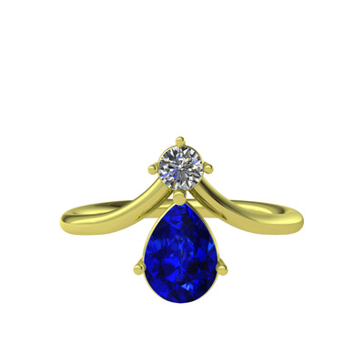 Pırlanta ve lab safir 18 ayar altın yüzük (0.11 karat)
