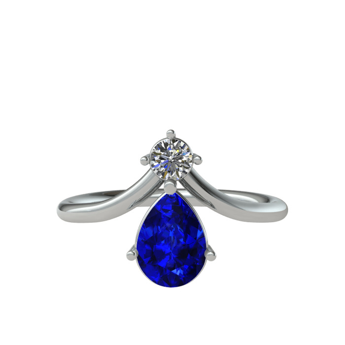 Pırlanta ve lab safir 8 ayar beyaz altın yüzük (0.11 karat)