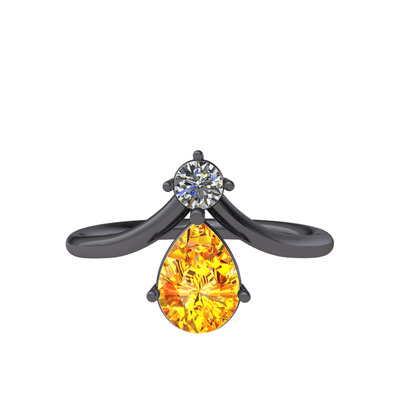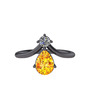 Pırlanta ve sitrin 925 ayar siyah rodyum kaplama gümüş yüzük (0.11 karat)