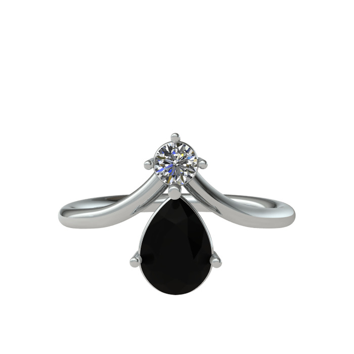 Pırlanta ve siyah zirkon 18 ayar beyaz altın yüzük (0.11 karat)