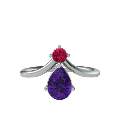 Rodolit garnet ve ametist 14 ayar beyaz altın yüzük