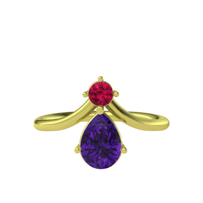 Rodolit garnet ve ametist 925 ayar altın kaplama gümüş yüzük