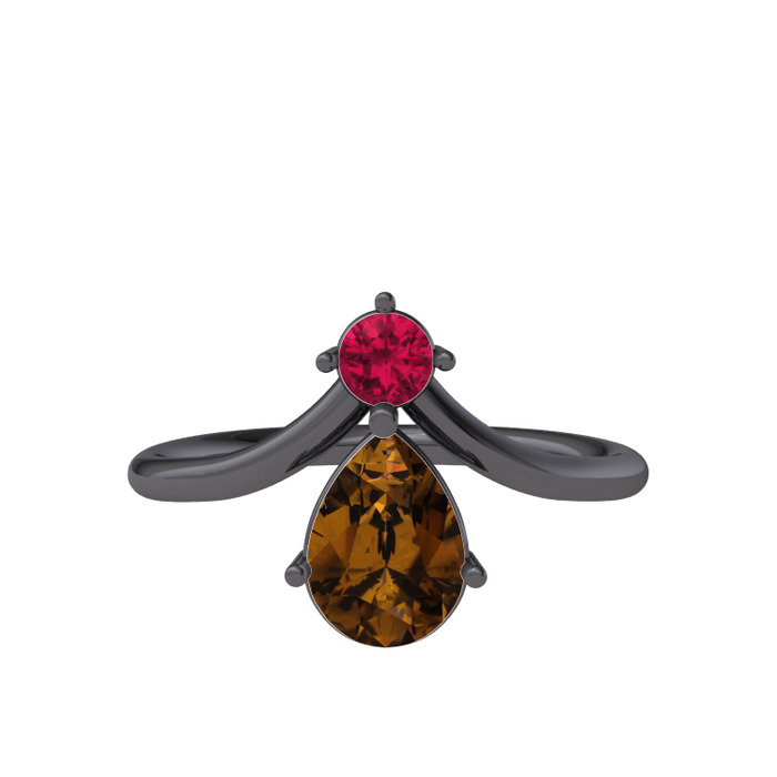 Rodolit garnet ve dumanlı kuvars 925 ayar siyah rodyum kaplama gümüş yüzük