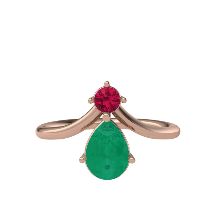 Rodolit garnet ve kök zümrüt 18 ayar rose altın yüzük