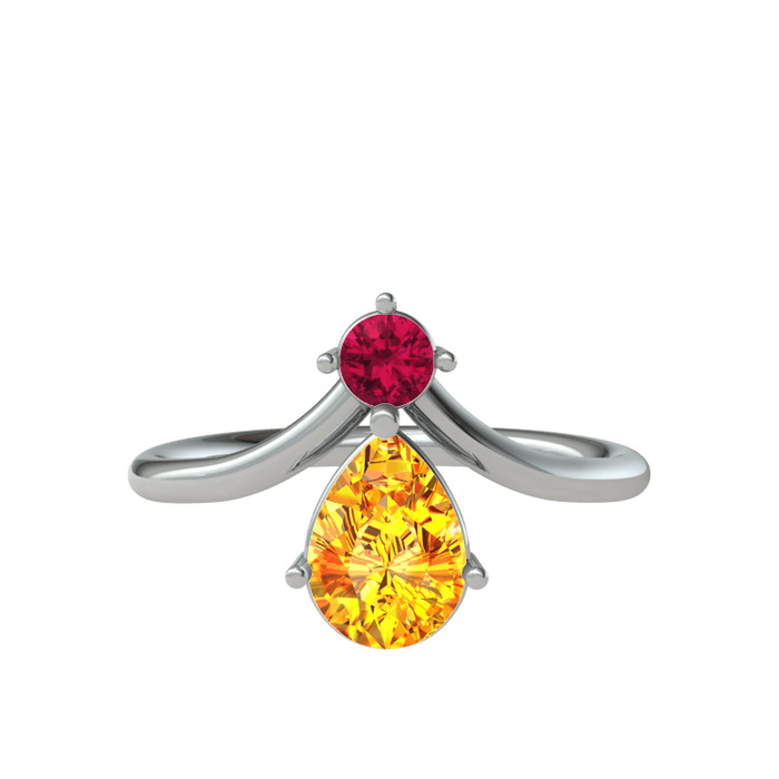 Rodolit garnet ve sitrin 14 ayar beyaz altın yüzük
