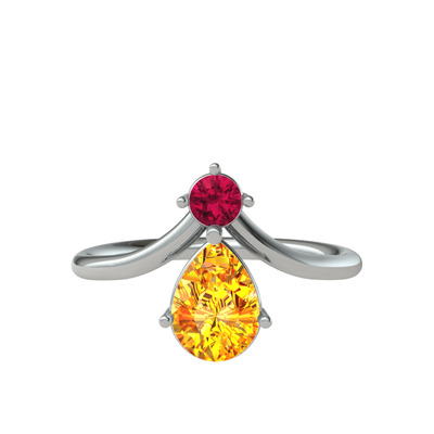 Rodolit garnet ve sitrin 8 ayar beyaz altın yüzük