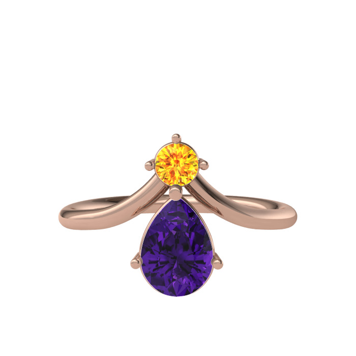 Sitrin ve ametist 8 ayar rose altın yüzük