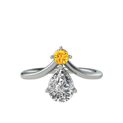 Sitrin ve beyaz zirkon 18 ayar beyaz altın yüzük