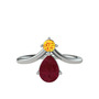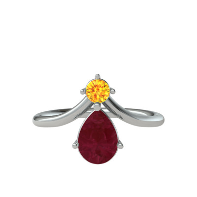 Sitrin ve kök yakut 18 ayar beyaz altın yüzük
