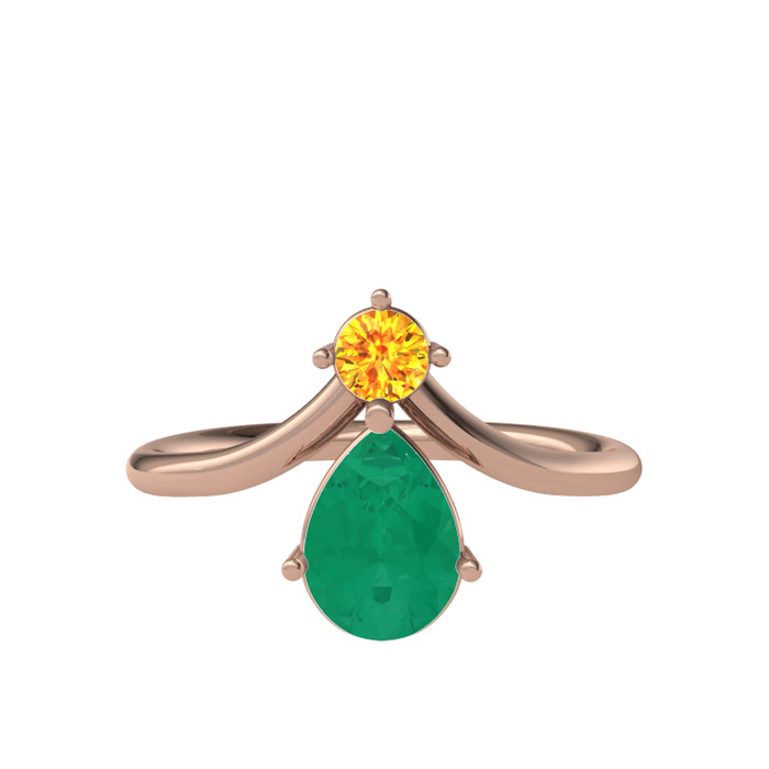 Sitrin ve kök zümrüt 14 ayar rose altın yüzük