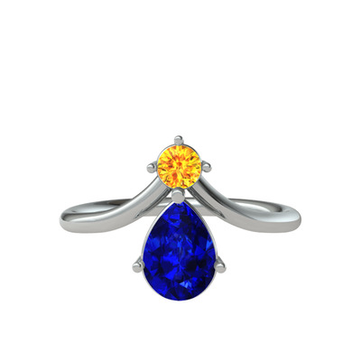 Sitrin ve lab safir 18 ayar beyaz altın yüzük