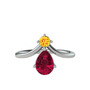 Sitrin ve rodolit garnet 14 ayar beyaz altın yüzük