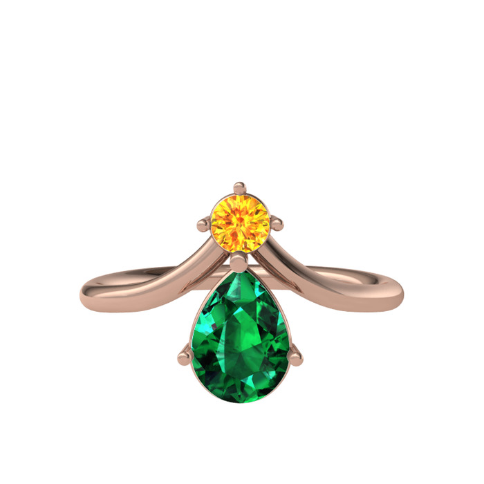 Sitrin ve yeşil kuvars 8 ayar rose altın yüzük