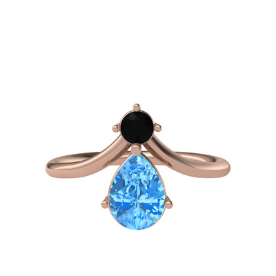 Siyah zirkon ve akuamarin 8 ayar rose altın yüzük