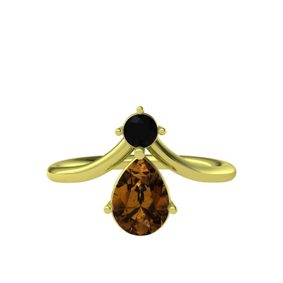 Siyah zirkon ve dumanlı kuvars 925 ayar altın kaplama gümüş yüzük