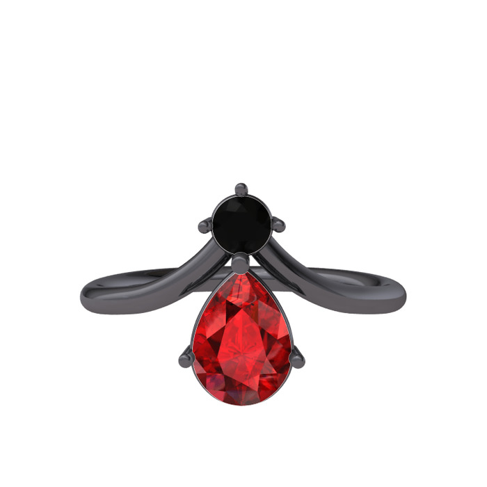 Siyah zirkon ve garnet 925 ayar siyah rodyum kaplama gümüş yüzük