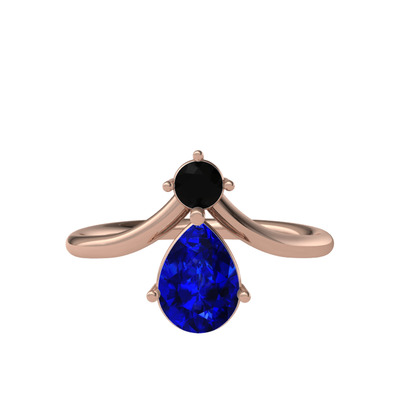 Siyah zirkon ve lab safir 14 ayar rose altın yüzük